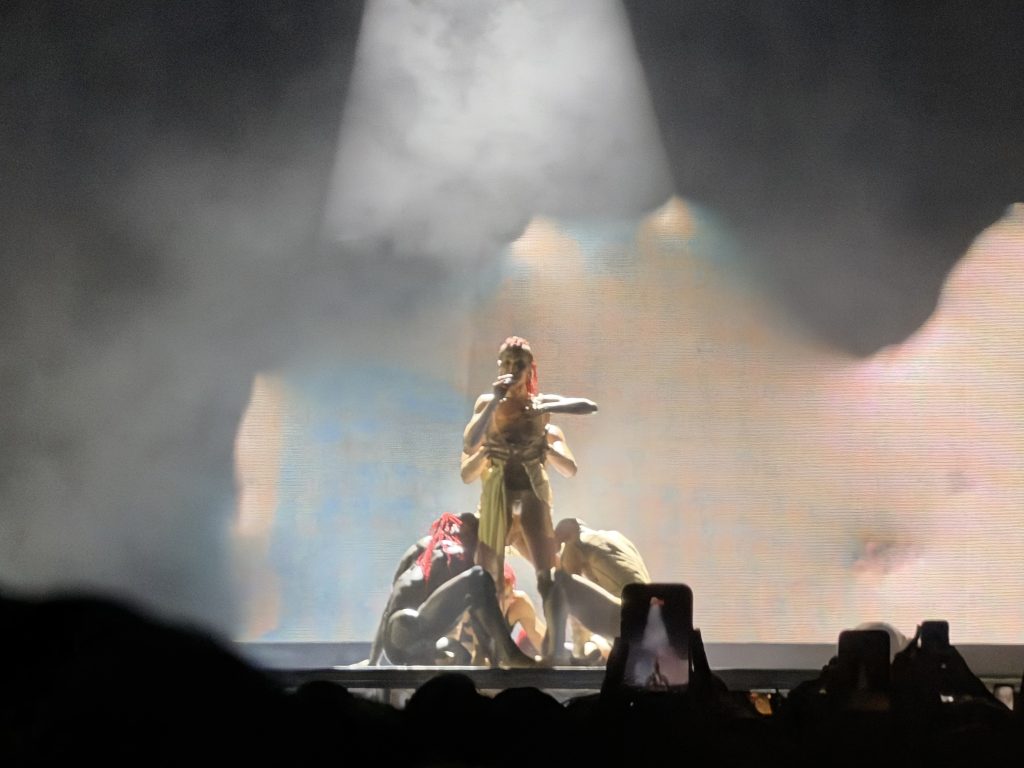 What followed was, depending on one’s perspective, either an admirable and ambitious multimedia event or a show with a muddied narrative and glaring lack of connective tissue. The crowd seemed to find it mostly the former: when a hype man emerged early on to pivot the show into a few minutes of a full rave, the audience responded with more enthusiasm than they had for some of the more melodramatic singer-songwriter moments. To me, the transitions just felt jarring, the seams between art-pop, rave, and performance art never quite hidden well enough to create a coherent experience.