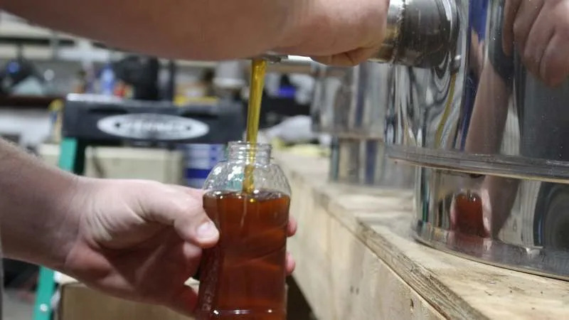 Inside the warehouse is everything he needs to keep his honeybees going — from giant metal equipment used to make sugary syrup for honeybee food, to a machine used to extract honey.