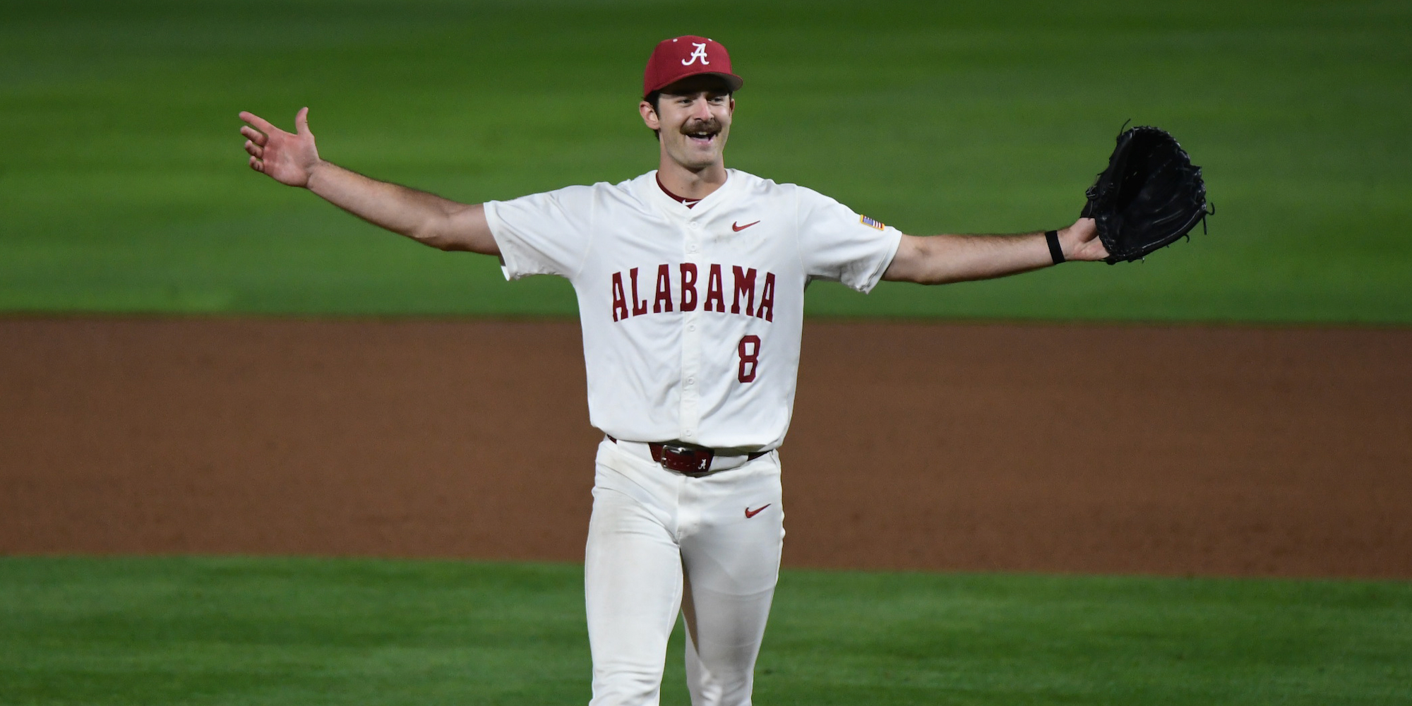Alabama’s Tyler Fay celebrates his no-hitter against Florida (Aaron Fitt)