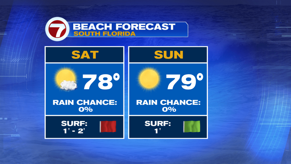 That will be paired with tons of sunshine and dry conditions. The breeze will remain present throughout the day Saturday, however, keeping the rip current risk high at our beaches. It’s not until Sunday when winds lighten further, leading to favorable beach and boating conditions.