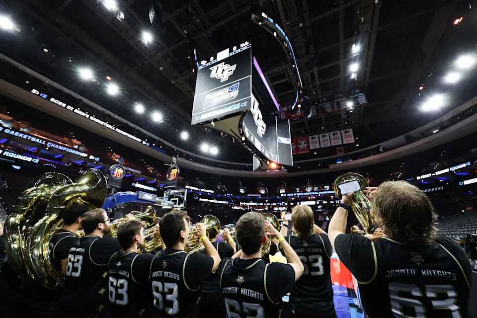 The UCF Knights band performs during a practice session ahead of the first round of the men’s 2026 NCAA Tournament at Xfinity Mobile Arena on March 19, 2026 in Philadelphia.