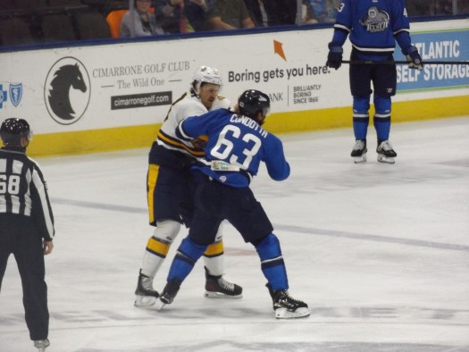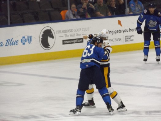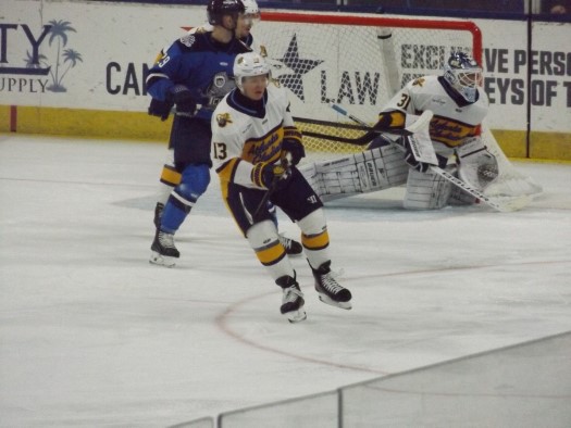 The Gladiators came out with some great chances to begin the game but could not get the puck to bounce in their favor. Ryley Appelt fought Jaden Condotta 7:31 into the game, igniting some passion into the Gladiators’ game. The Gladiators had a chance on the power play 9:53 into the period but did not convert. With 7:04 left in the first period the Icemen broke the scoreless tie, with Adam McMaster scoring in transition from Jaques Bouquot and Holden Wale to make it a 1-0 Jacksonville lead.