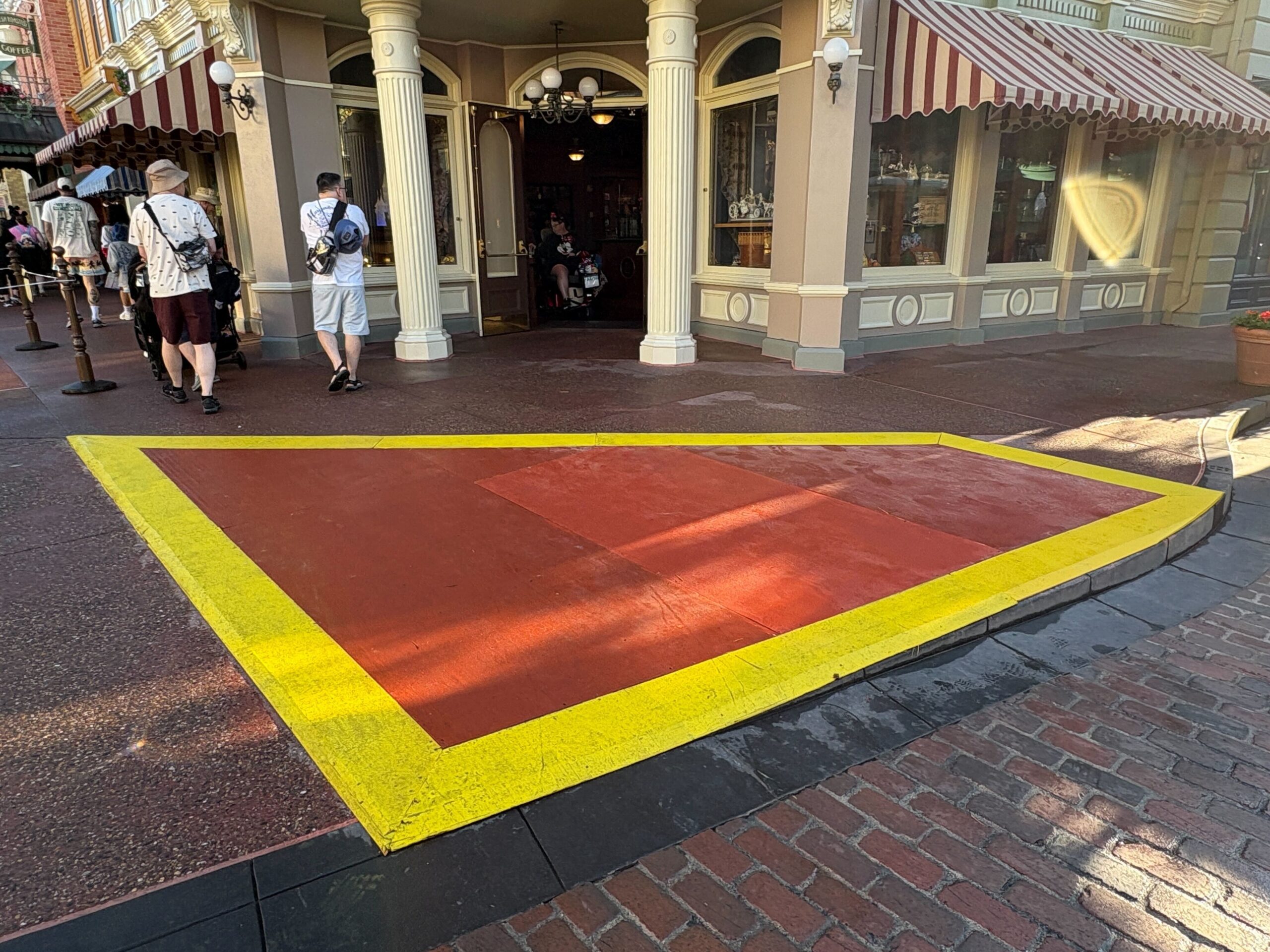 We’ll likely see more signs of work along the Main Street, U.S.A. sidewalks over the next couple of weeks as refurbishment progresses. The refurbishment has even extended onto Main Street, U.S.A. itself, with Cast Members helping direct guests around the roped areas.