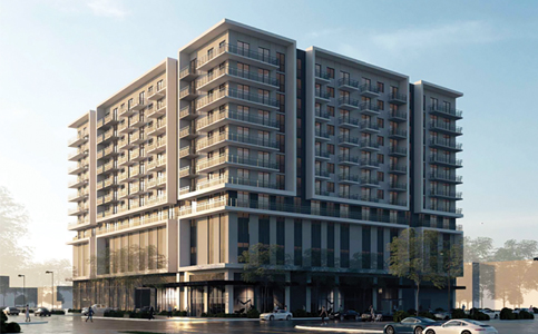 “The building’s base is composed of four levels of structured parking, thoughtfully integrated as an active architectural component rather than a purely utilitarian element. The parking façades are wrapped with artistically arranged vertical panels of perforated metal mesh, creating rhythm, depth, and visual variation.