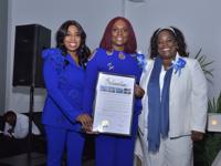 Beta Tau Zeta Executive Board Chair Dr. Lulu Orange Tyson and Beta Tau Zeta President Patricia Armbrister-Hill receive a Miami-Dade County proclamation from Citizen of the Year recipient Michelle D. Johnson.