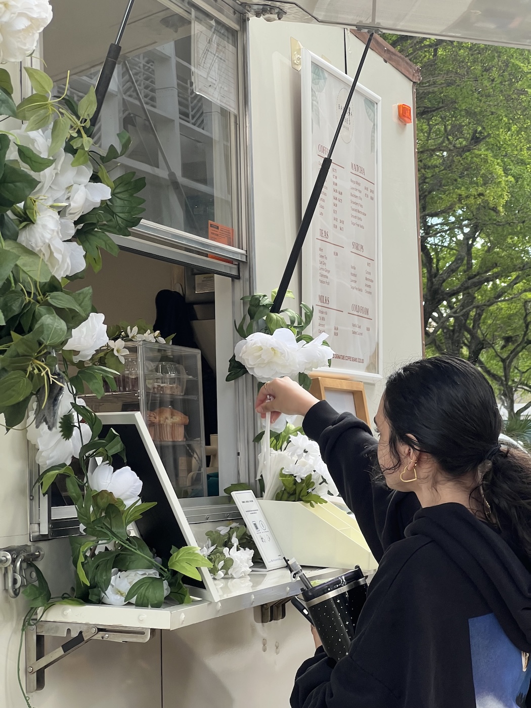 The female-owned coffee and matcha cart and trailer regularly sets up at several campus locations, near the School of Communication, the Jorge M. Pérez Architecture Center and the Cox Science Building.