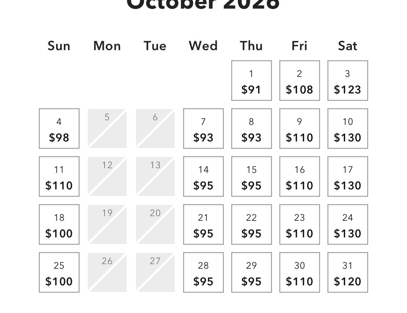 October 1, 2, 3, 4, 7, 8, 9, 10, 11, 14, 15, 16, 17, 18, 21, 22, 23, 24, 25, 28, 29, 30, 31