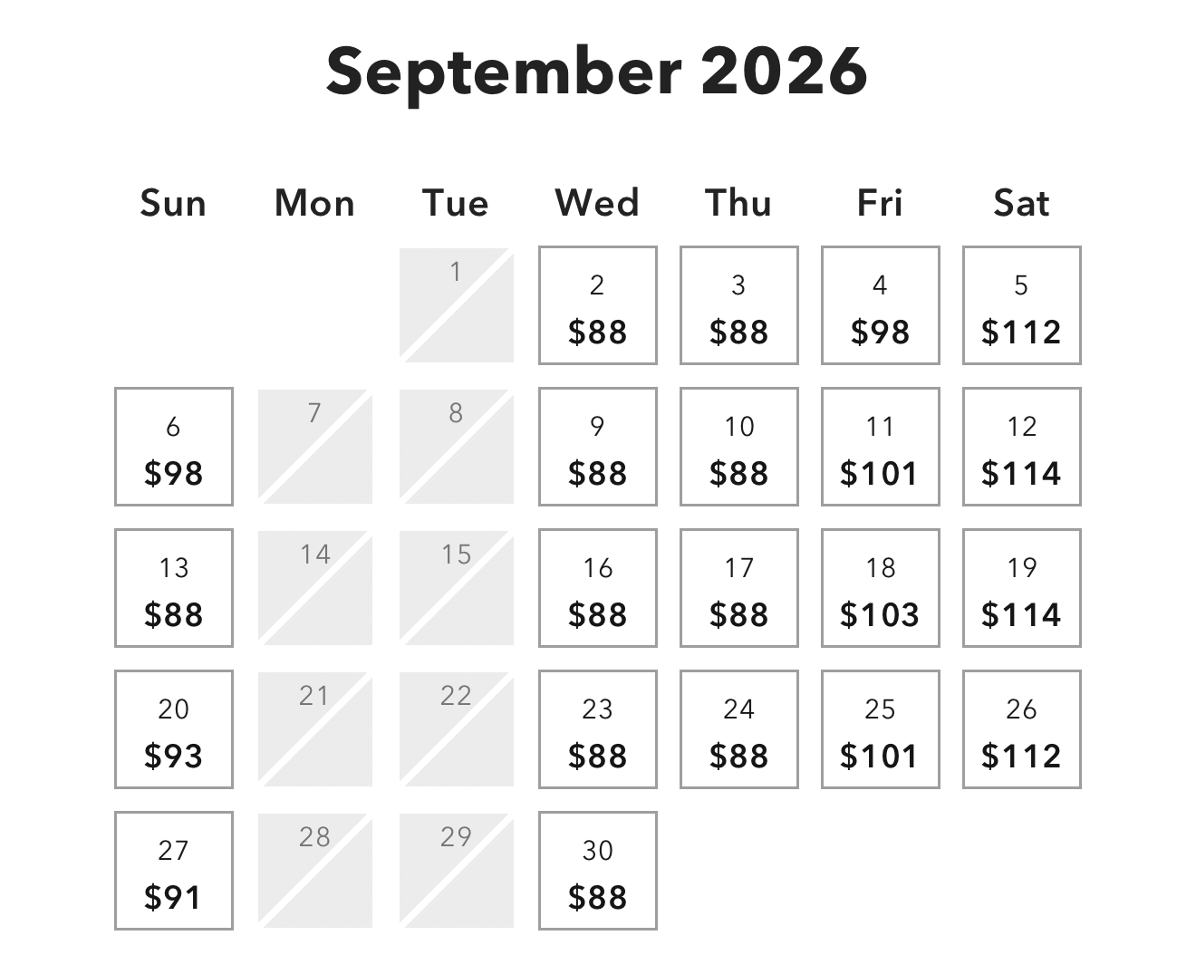 September 2, 3, 4, 5, 6, 9, 10, 11, 12, 13, 16, 17, 18, 19, 20, 23, 24, 25, 26, 27, 30