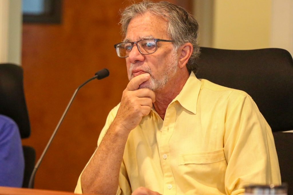 FILE – Council Member Frank Caplan listens to debate during a meeting of the Key Biscayne Village Council, Feb. 16, 2023 (KBI Photo/Tony Winton)