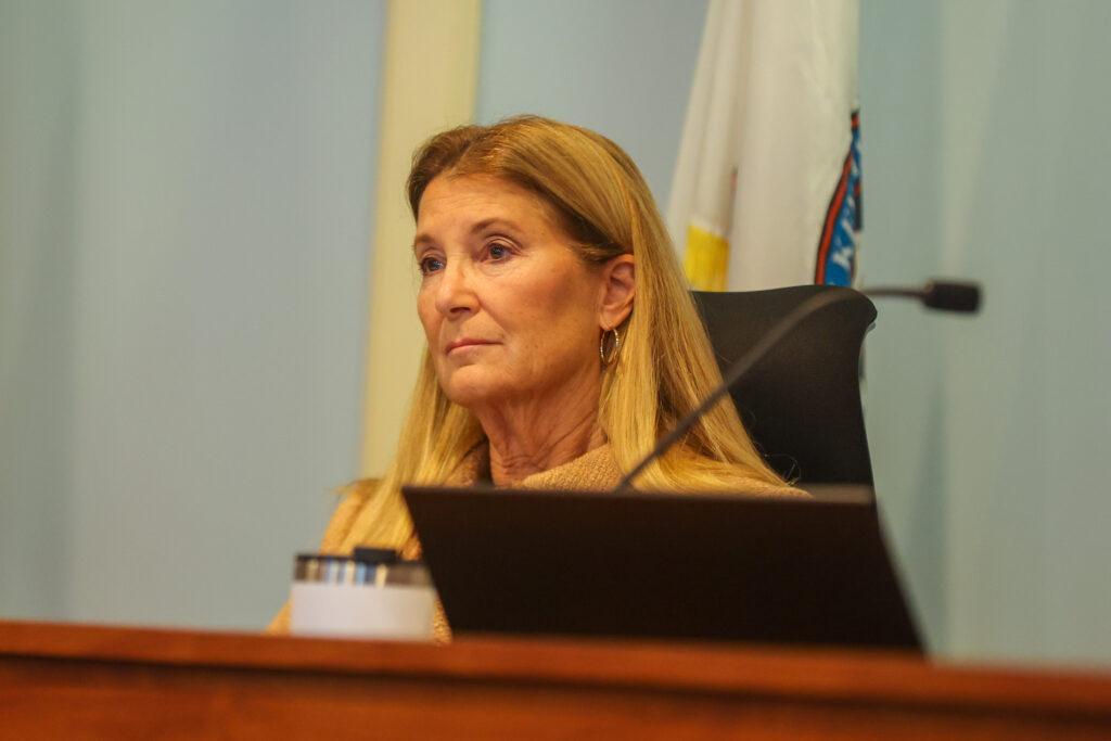 FILE — Key Biscayne Village Council Member Nancy Stoner at a meeting, Nov. 18. 2025. She is proposing doing away with the Village’s code enforcement board after an appeals court rebuked the way case involving a boat dock was handled (KBI Photo/Tony Winton)