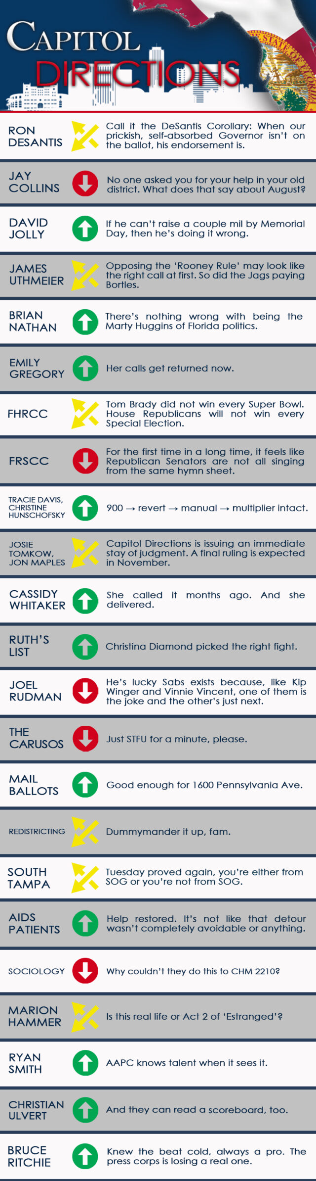 Coming up, the usual assortment of news, intel, and observations from the week that was in Florida’s capital city by Peter Schorsch, Drew Wilson, Drew Dixon, Liam Fineout and the staff of Florida Politics.
