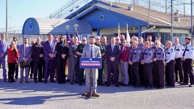 James Uthmeier announces the sentence of a man convicted of delivering drugs to prisoners using a drone.
