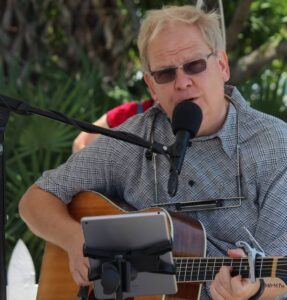 Mike Sales from Holmes Beach. Known for his long-running “Live Music on the Beach” Friday evening residency at the Anna Maria Island Beach Café. “Plays guitar, with a touch of calypso rhythm, and sings tunes he writes in the chill island style and positive vibe he’s known for.” Website.