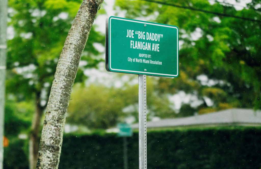 The designation marks the corner of Northeast 18th Avenue and Ixora Lane, which is now called “Joe ‘Big Daddy’ Flanigan Ave.”