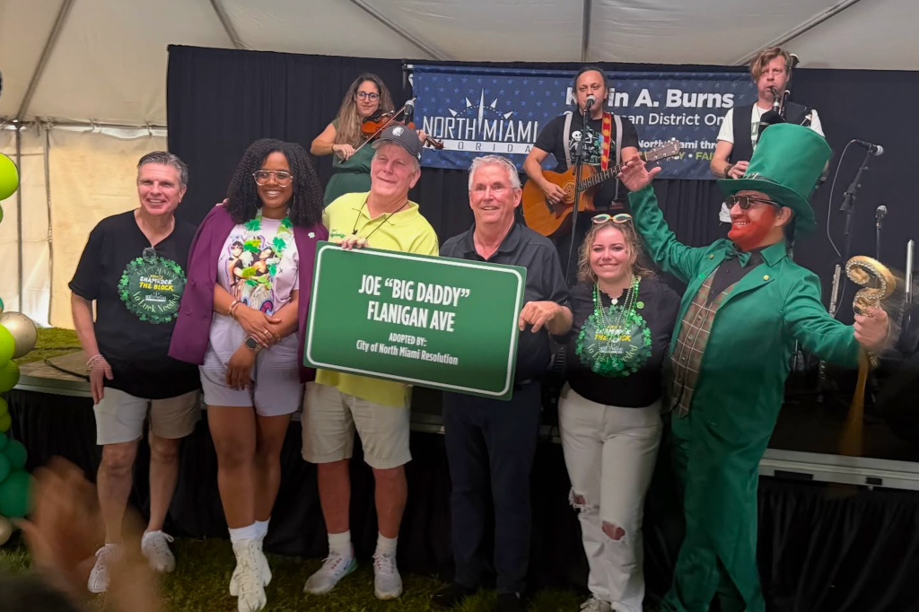 The designation marks the corner of Northeast 18th Avenue and Ixora Lane, which is now called “Joe ‘Big Daddy’ Flanigan Ave.” It’s a tribute to both the man and the decades-long presence of Flanigan’s in the community. The recognition was formally introduced as part of the city’s annual Shamrock the Block Party at Keystone Park.