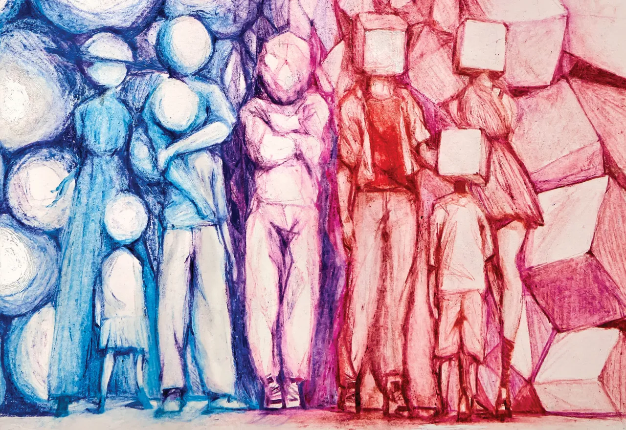 “The image suggests that even in challenging times, love has the power to illuminate, to heal and to reveal the full spectrum of our shared humanity,” Embracing Our Differences explains. Its student counterpart was awarded to “Equal Booths,” an entry from Siwon Jung. The 11th-grade student attends the Seoul Scholars International Art & Design in Seoul, Republic of Korea.