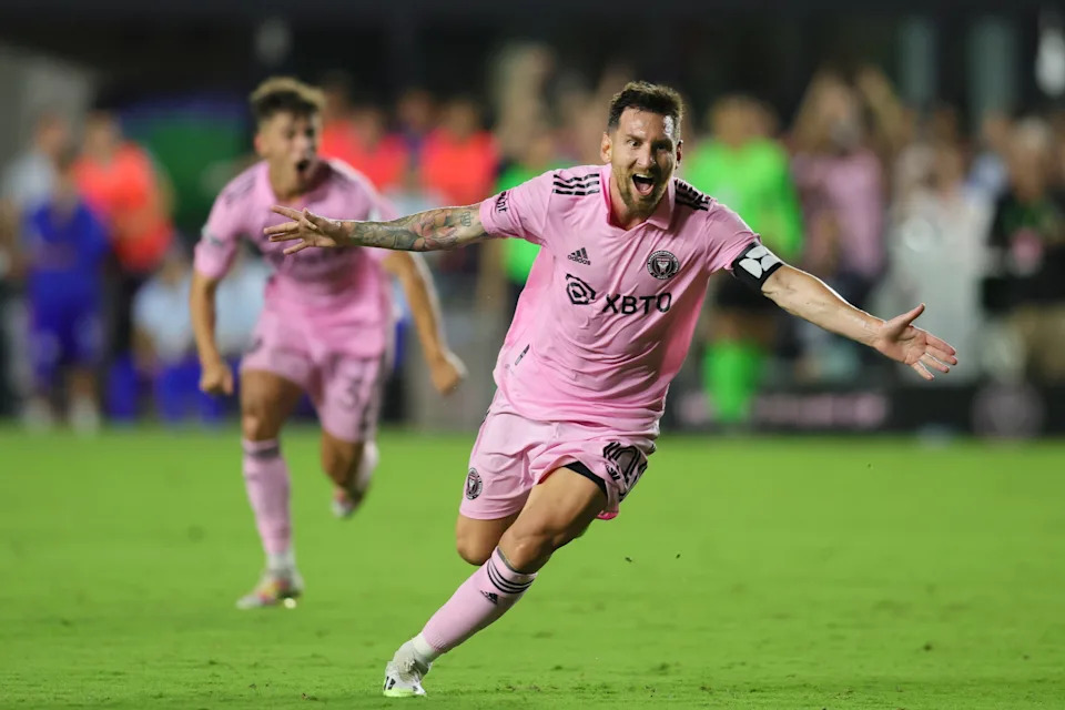 July 21, 2023: Lionel Messi celebrates a goal against Cruz Azul in the Leagues Cup opener.