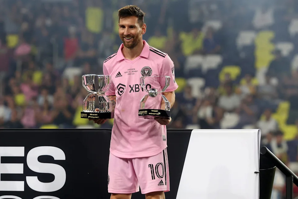 Aug. 19, 2023: Messi during the trophy ceremony for the Leagues Cup Championship match.