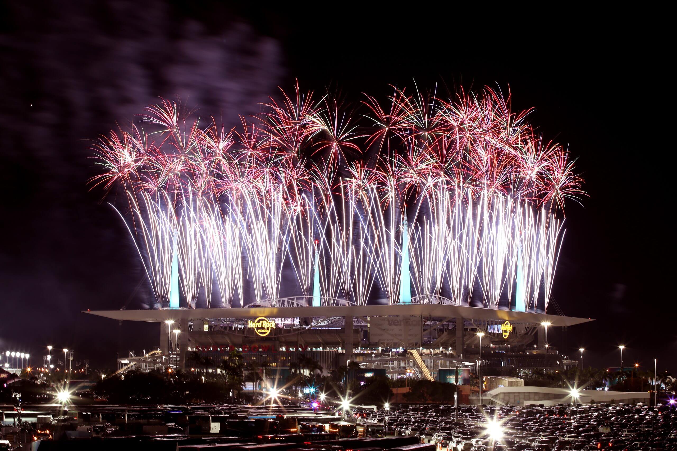 Fireworks during the half-time show of Super Bowl LIV, in 2020 (Buda Mendes/Getty Images)
