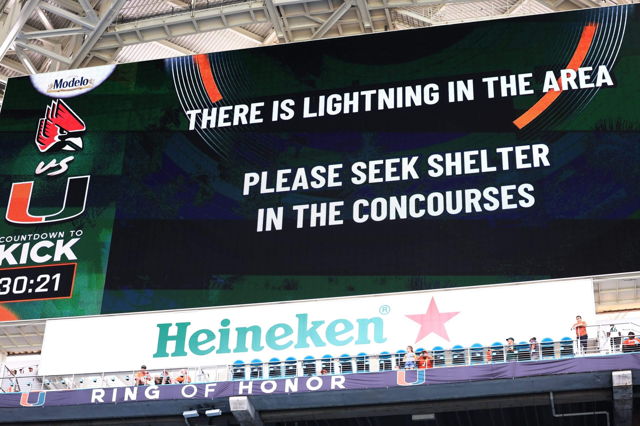 The Florida weather is an ever-present factor at the stadium (Carmen Mandato/Getty Images)
