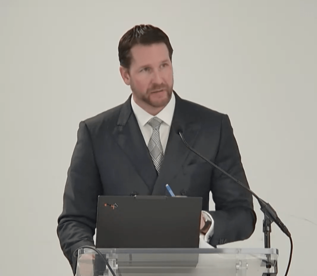 Attorney Alejandro Arias, representing CREI Holdings LLC and its CEO Raul F. Rodriguez, addressing the Sweetwater City Commission on Feb. 13.