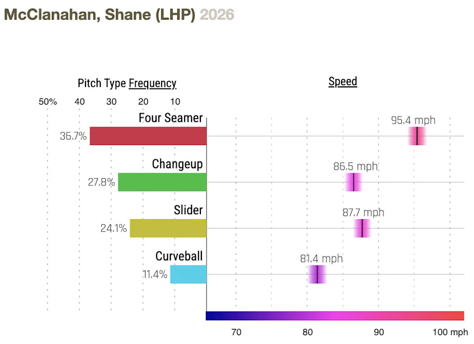 Shane McClanahan allowed two hits and three walks in 4.2 innings in his first 2026 start against the Brewers. That was, in fact, his first MLB appearance since 2023, following Tommy John surgery and then a nerve issue.