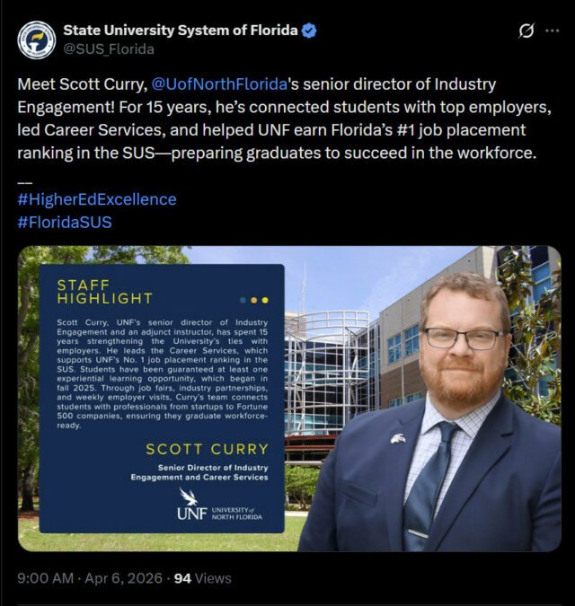 DeSantis also appointed Virginia Berg to the FSCJ Board. She previously served as FSCJ’s Director of Government Relations. She may be best known to the statewide audience for her role as former Gov. Rick Scott’s Director of Appointments.