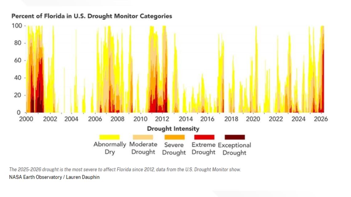 ST. PETERSBURG, Fla. — Florida’s current drought is the “most widespread and severe to affect the state since 2012,” according to NASA researchers citing the U.S. Drought Monitor.