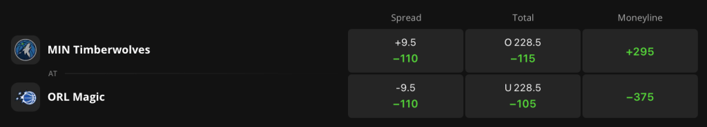 Looking at the odds for tonight, the Magic enter as 9.5-point favorites and hold -375 odds of winning outright on DraftKings Sportsbook. The Timberwolves hold +295 odds of winning outright with the game total set at 228.5 points.