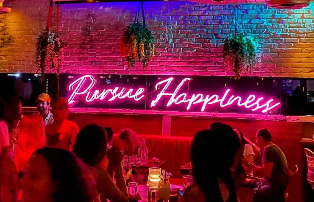 Sweet Liberty is home to a legendary “Pursue Happiness” neon sign