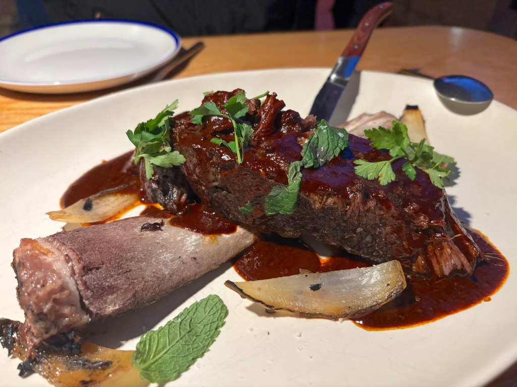 The za’atar short rib has quickly become a must-try. The massive, bone-in cut is large enough to feed two — possibly three — and comes with tortillas for assembling tacos.