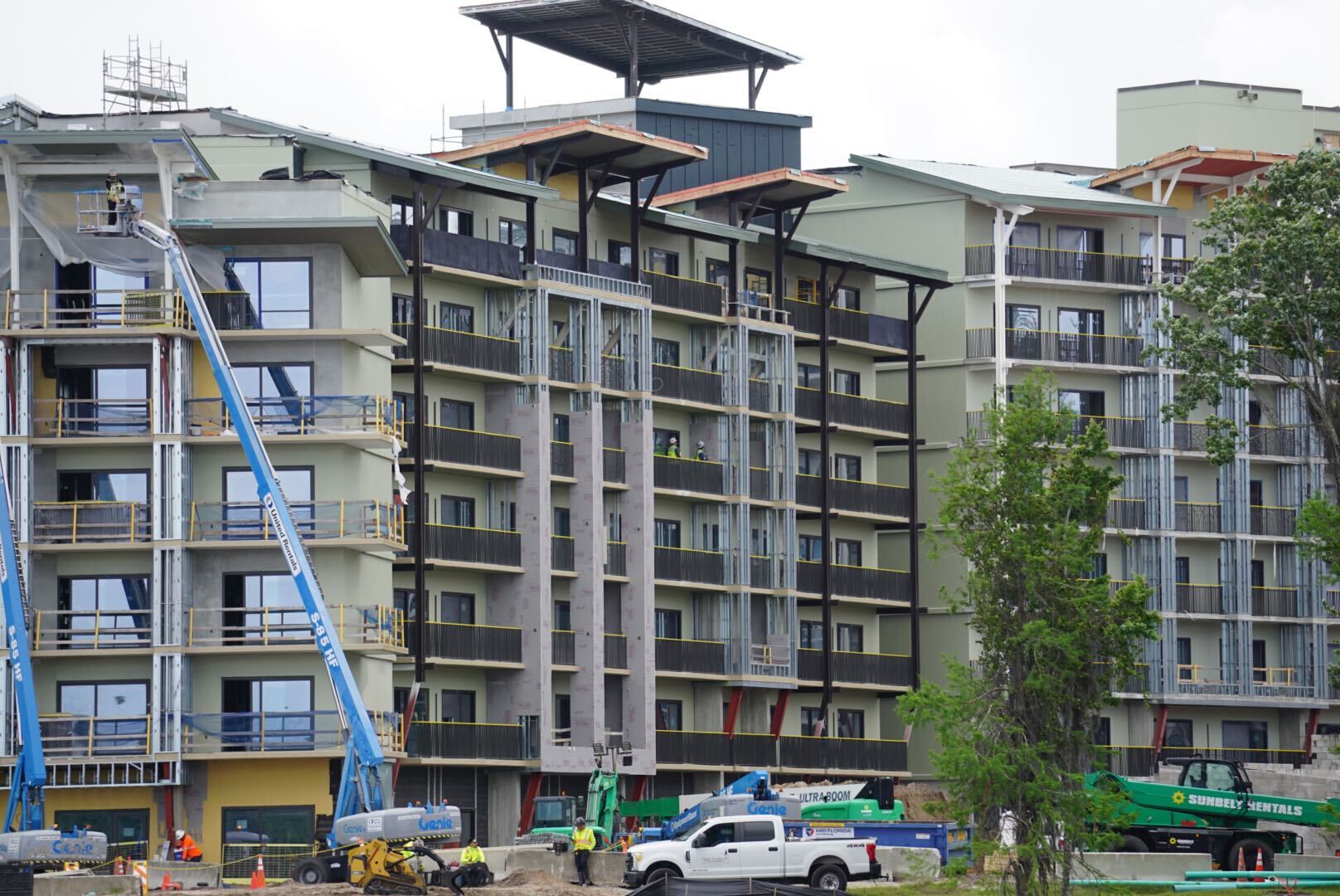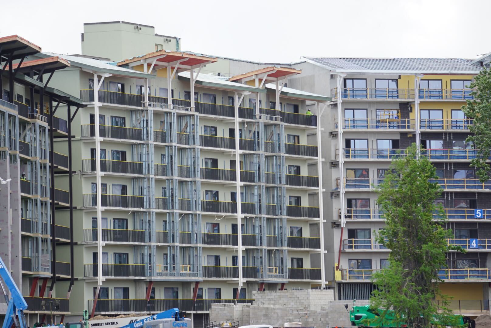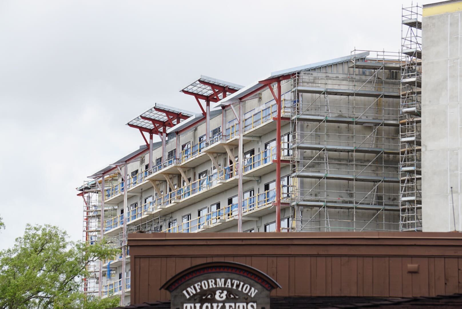 Construction also continues to progress on the other buildings, including the A-frame cabins and entrance porte cochere.