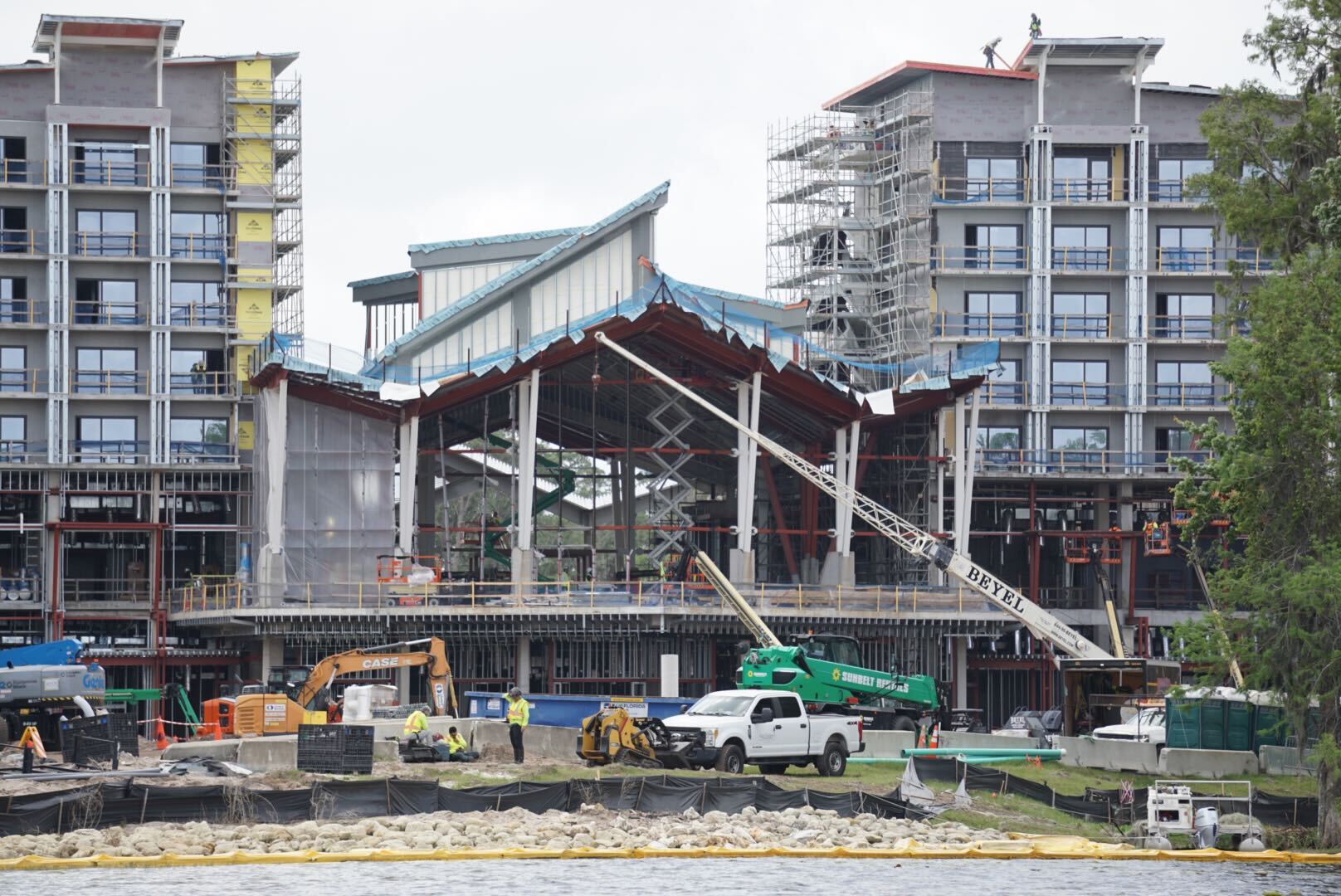 Construction continues to progress at the new Lakeshore Lodge Resort coming to Walt Disney World. Our last update showed ongoing work for the lazy river and lakeside cabins.