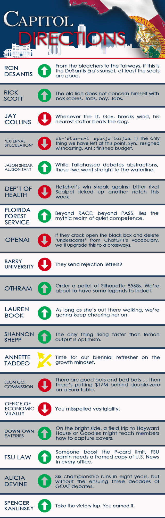 Coming up, the usual assortment of news, intel, and observations from the week that was in Florida’s capital city by Peter Schorsch, Drew Wilson, Drew Dixon, Liam Fineout and the staff of Florida Politics.