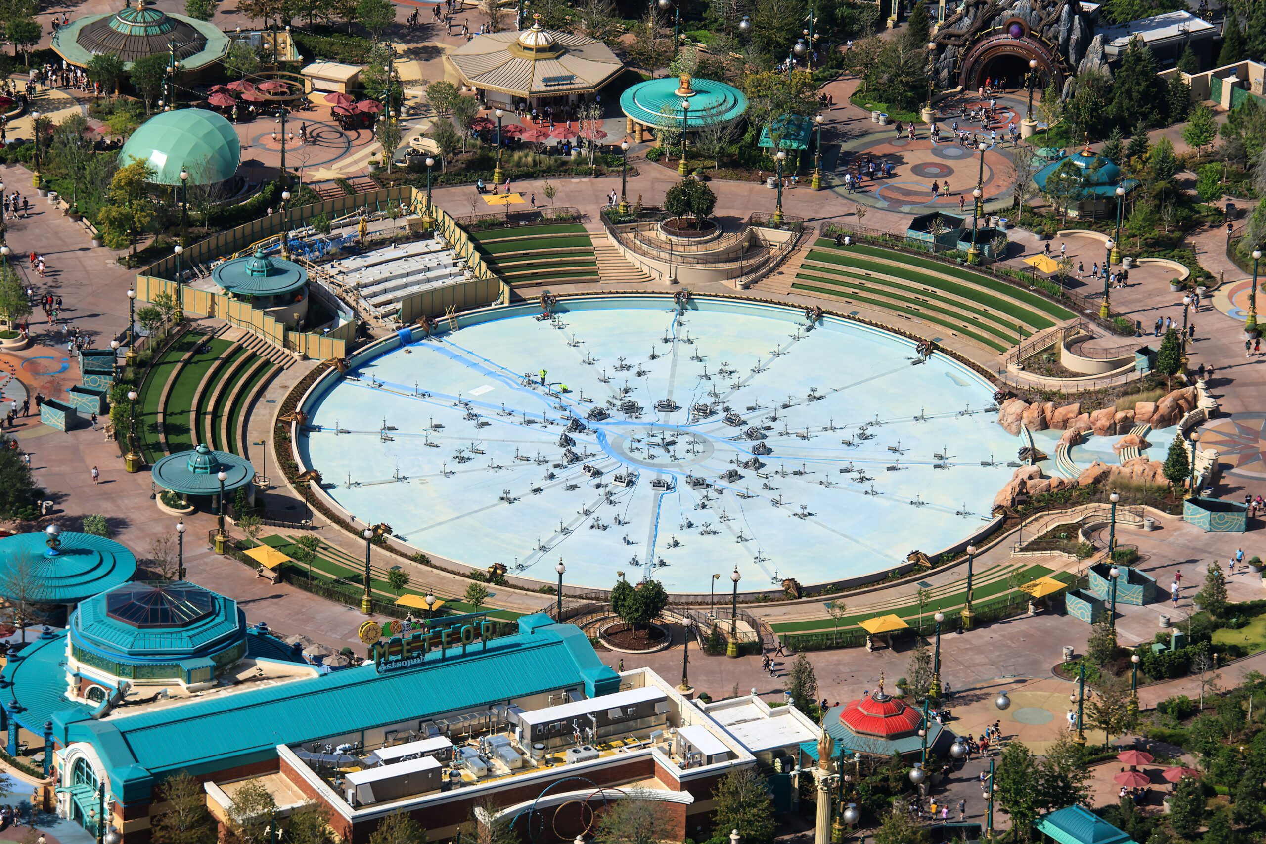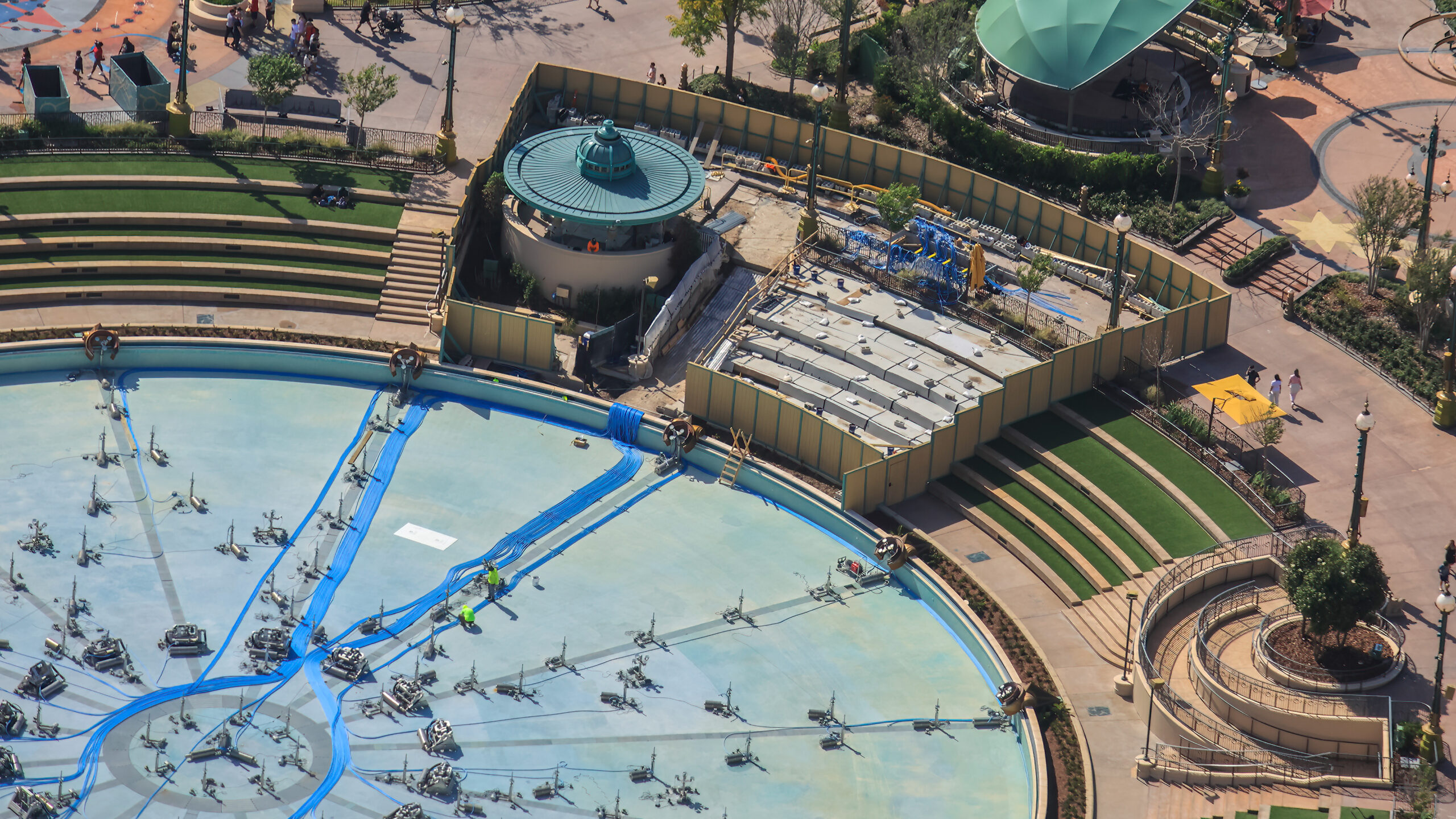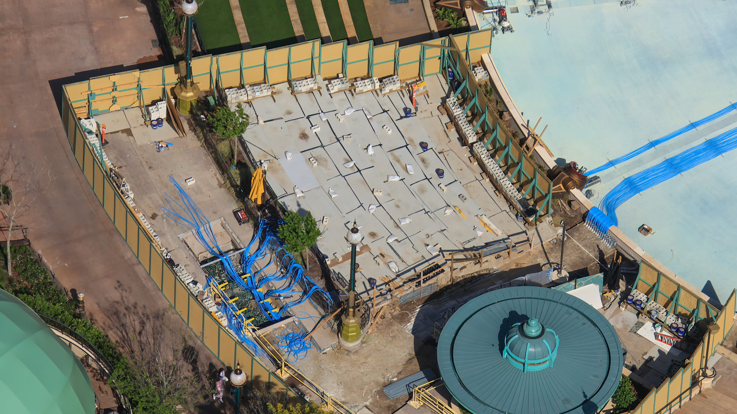 Over in the center of the park, Celestial Park’s Cosmos Fountain is still drained and undergoing various electrical updates, presumably to install new nighttime show effects in addition to other routine maintenance.