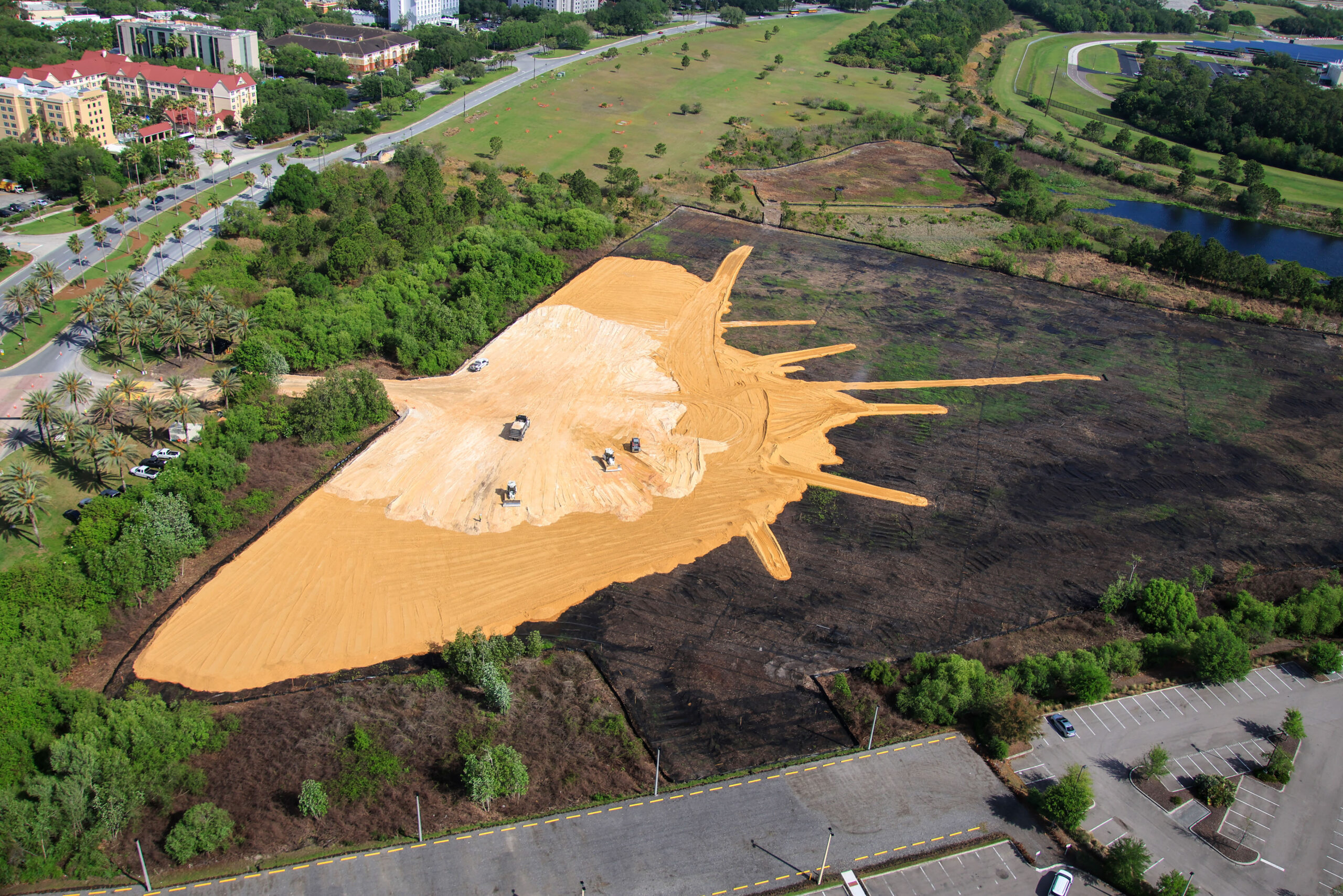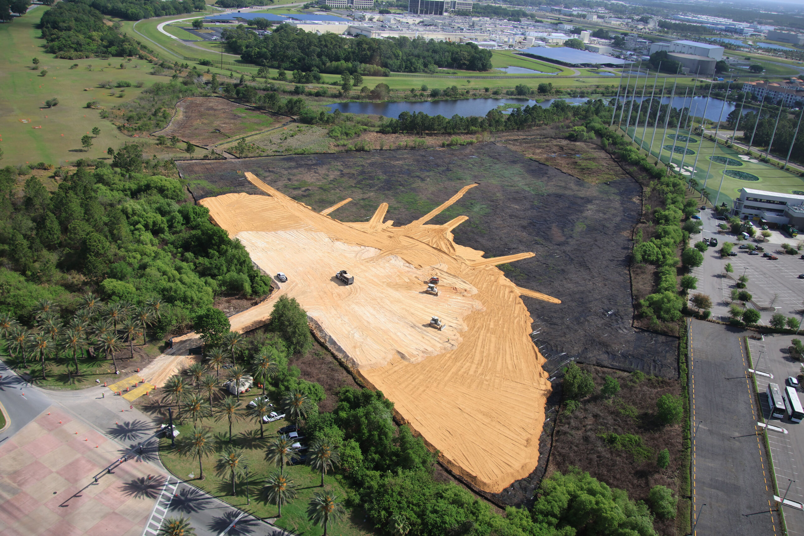 Further away from the park, we see progress continuing on mass grading work for a previously unused lot on Universal property. The sand work typically indicates the earliest stage of construction work, whereby sand is used to help provide a level foundation on rough or natural terrain.