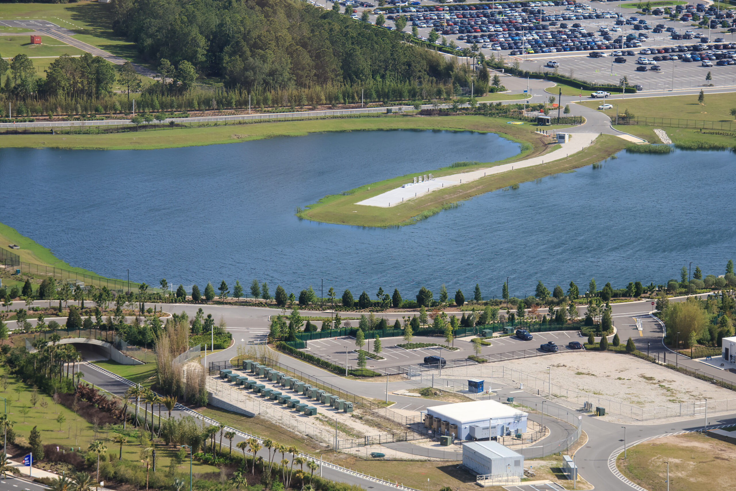 A quick look closer to the park proper reveals construction progress on a multipurpose facility being built for private events and similar functions connected to Epic Universe. The construction can be seen in the center-left of the above image.