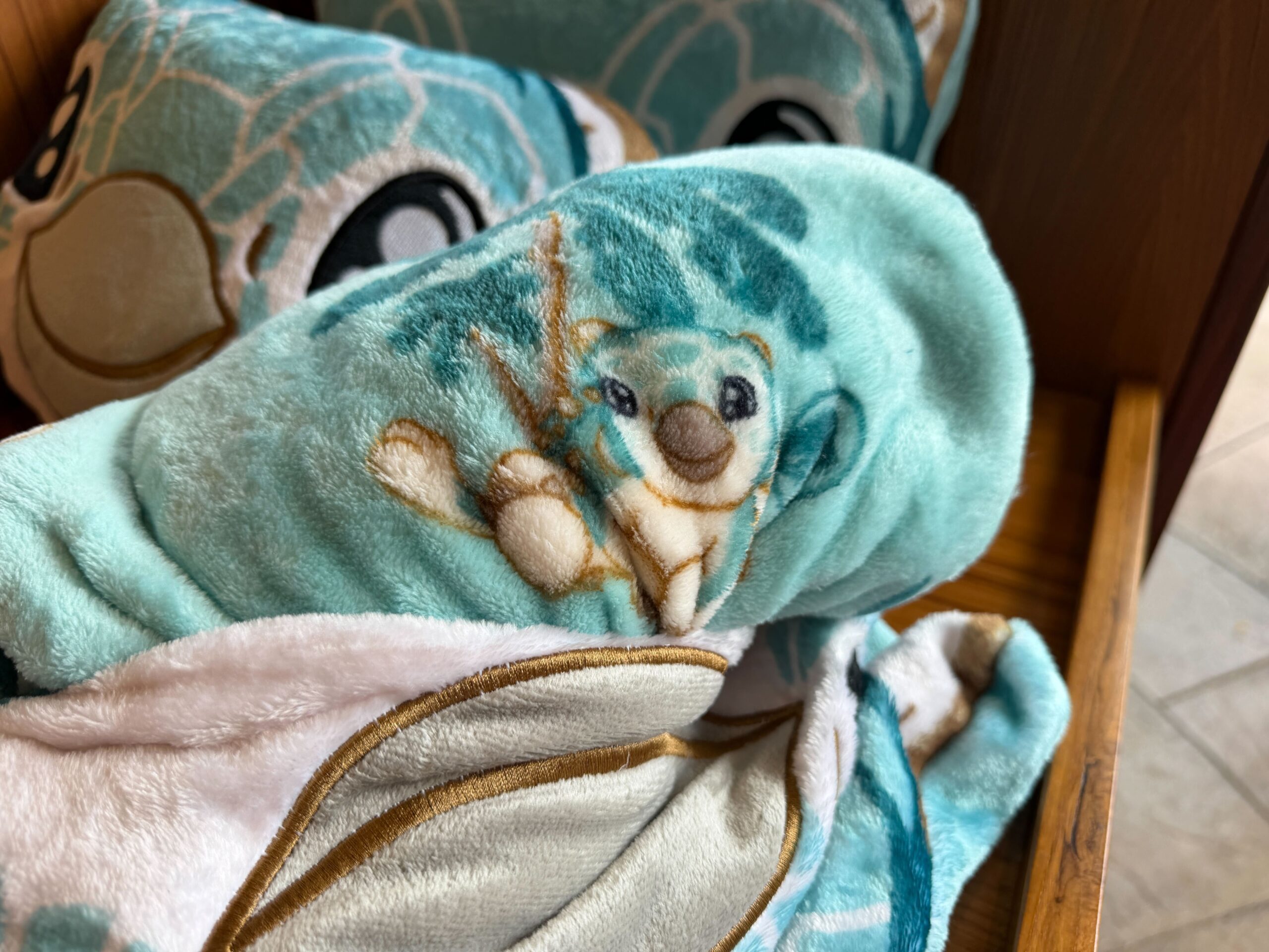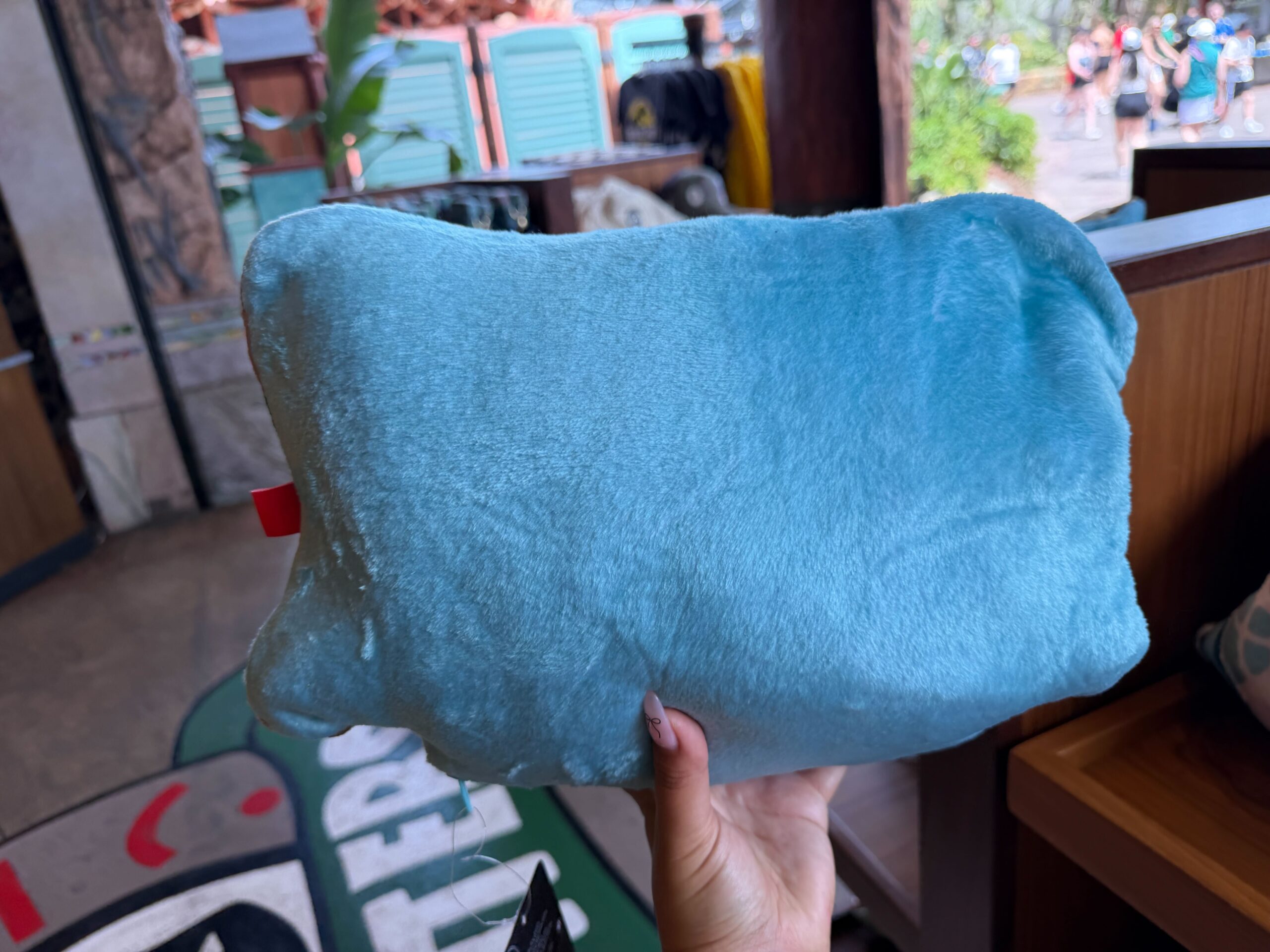 A standout item in this collection of infant and youth-oriented offerings, this pillow/blanket combo features Bumpy’s cheerful profile prominently on one side. When unzipped, the pillow reveals a Bumpy pattern turquoise blanket, which functions as the pillow’s stuffing.