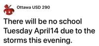In nearby Ottawa Kansas USD 290 have canceled classes for Tuesday.