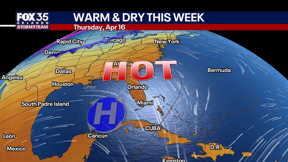 LOOKING AHEAD: We’re staying dry and sunny through the weekend with a big warm-up on the way. Highs climb into the low 90s by Friday and Saturday.