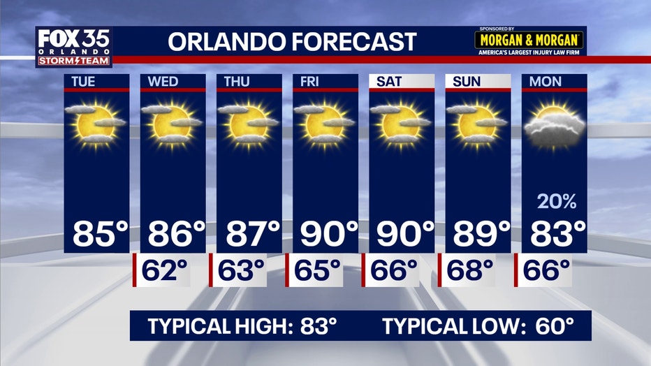 ORLANDO, Fla. – Another beautiful start to the day with plenty of sunshine and comfortable temps in the upper 60s to low 70s.