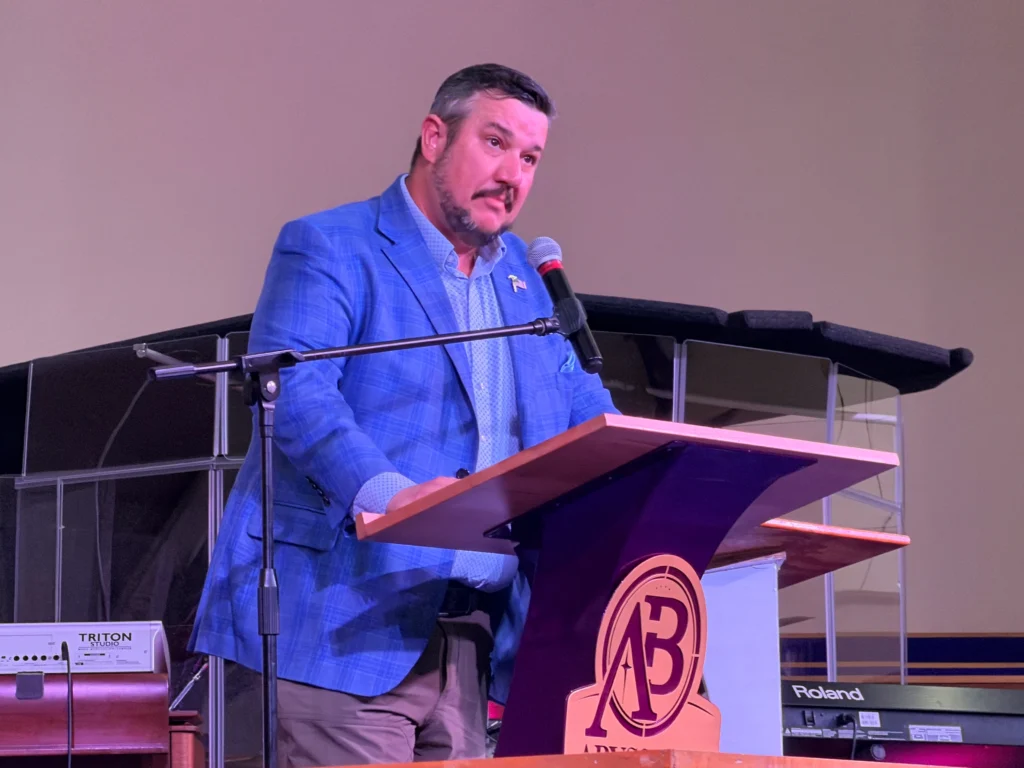 Northeast Florida Builders Association Executive Officer Jessie Spradley, executive officer of the Northeast Florida Builders Association, speaks at the ICARE Nehemiah Assembly on Monday, April 13, 2026. | Mike Mendenhall, Jacksonville Today