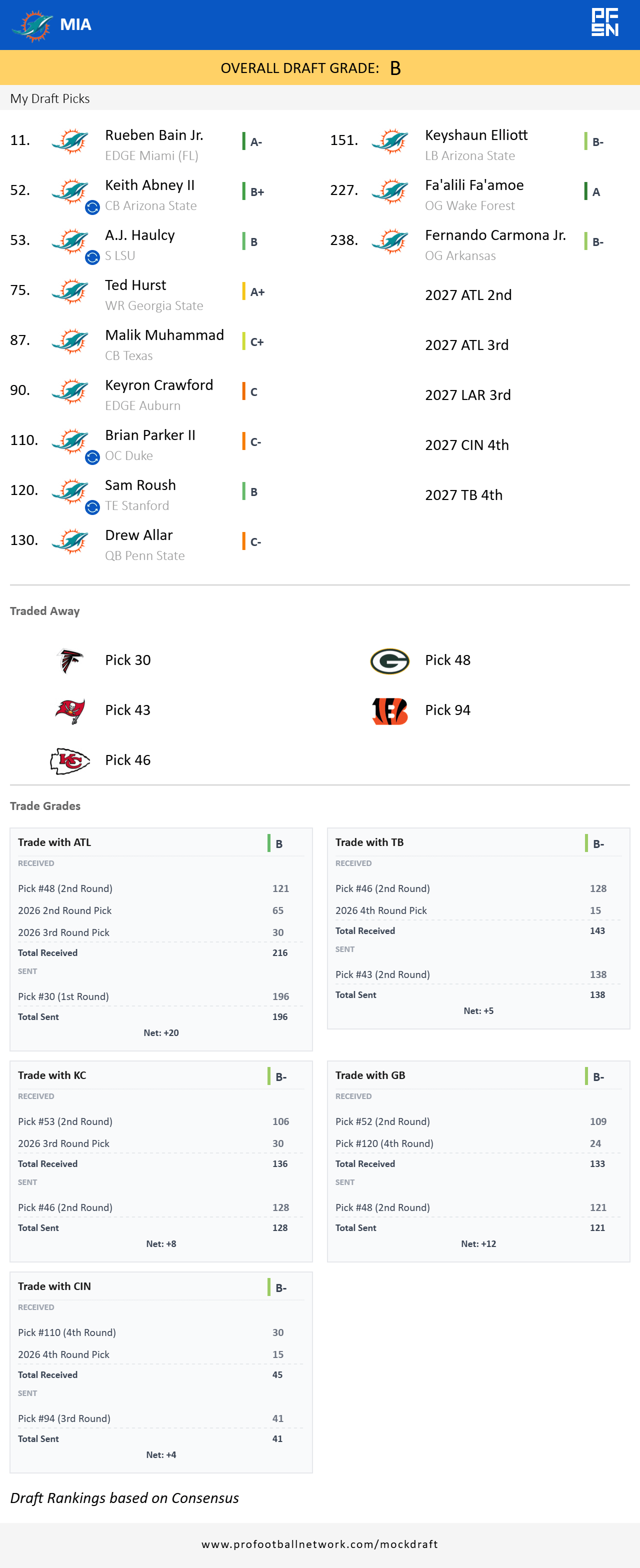 2026 NFL Miami Dolphins Mock Draft Results – 6th Edition