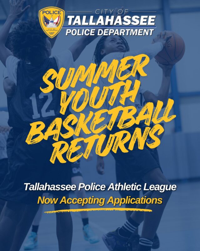 The program also aims to help youth understand the role law enforcement can serve in the community. The season runs from June 1 to July 29, with all games played at the City of Tallahassee’s Jack McLean Community Center (700 Paul Russell Road) every Monday and Wednesday from 6 to 9 p.m.