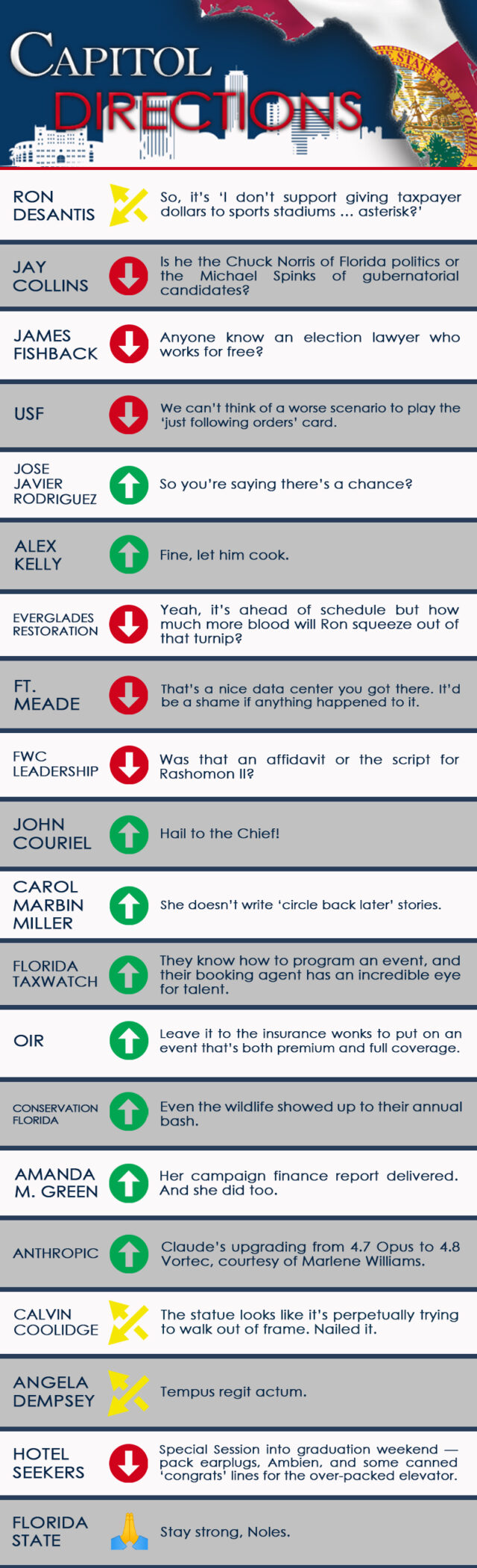 Coming up, the usual assortment of news, intel, and observations from the week that was in Florida’s capital city by Peter Schorsch, Drew Wilson, Drew Dixon, Liam Fineout and the staff of Florida Politics.