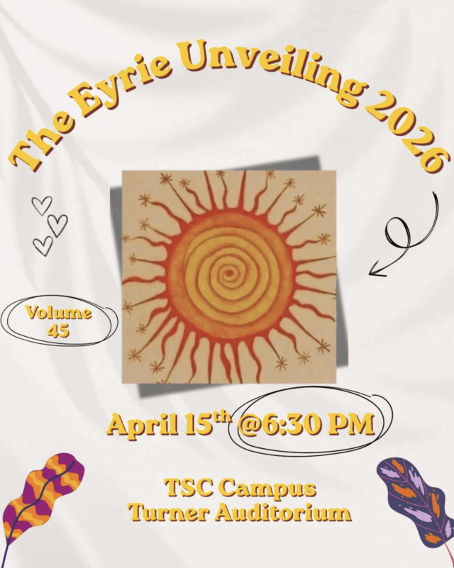 “Each edition of the Eyrie is a reflection of students finding their voices and trusting them enough to be heard. I am endlessly proud of the care, creativity, and courage our students bring to this work, and deeply grateful for the support that makes this experience possible year after year,” said Nicolette Constantino, an English professor at TSC and the magazine’s faculty adviser.