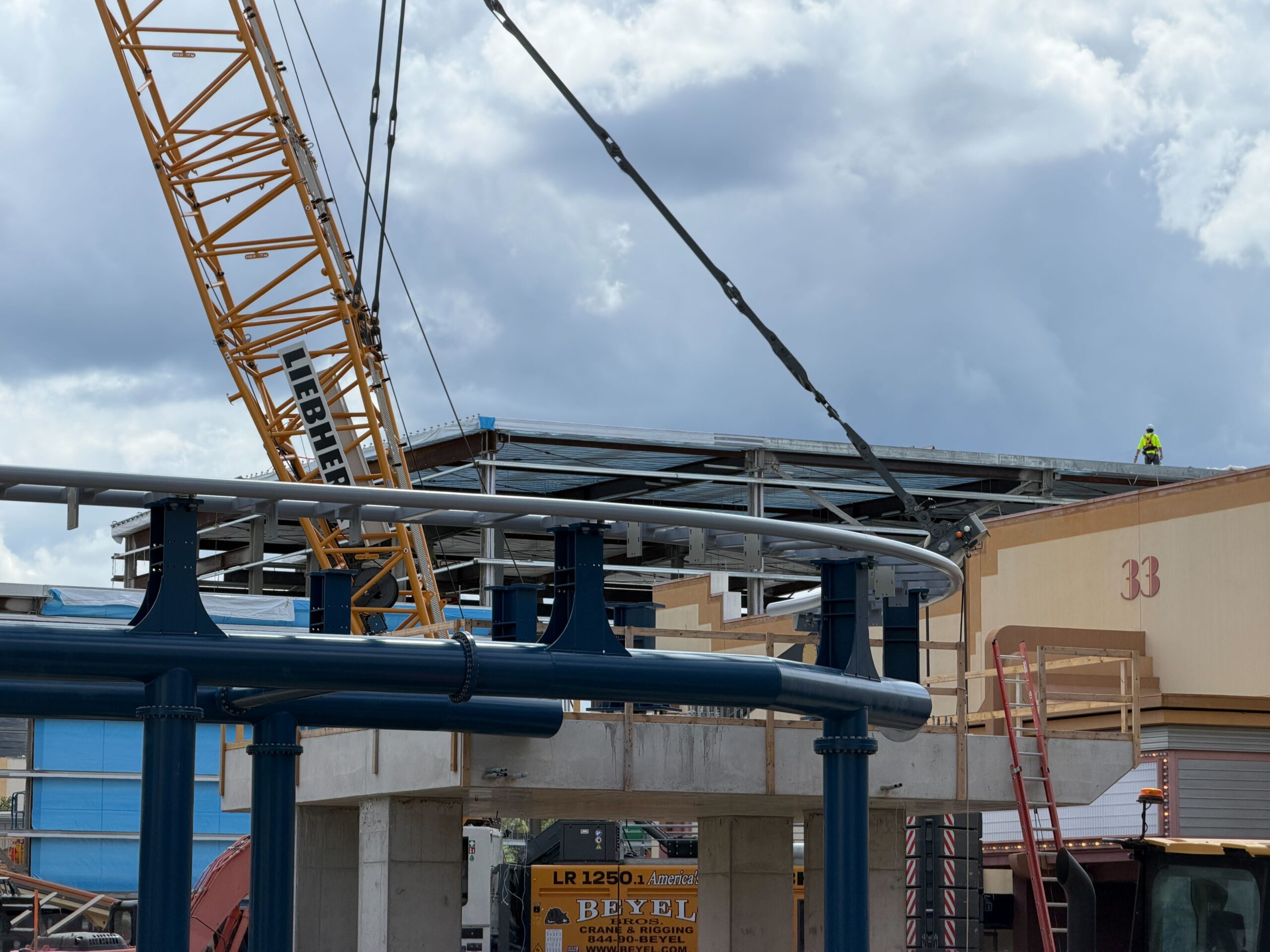 On a recent visit to Universal Studios Florida, we spotted a milestone construction update on the upcoming Fast & Furious: Hollywood Drift coaster.