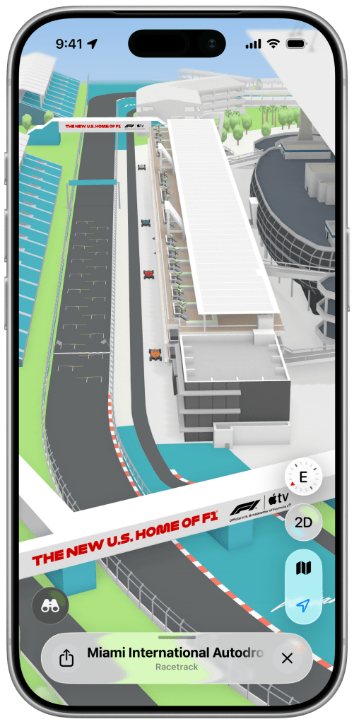 The first F1 Grand Prix in the United States of the this season takes place May 3 in Miami. Ahead of that, Apple is rolling out a detailed Apple Maps experience with immersive 3D landmarks, racetrack details, navigation information, and more.