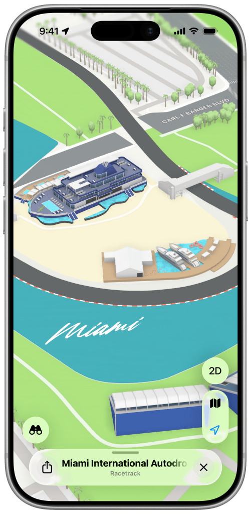 The new Miami F1 Grand Prix experience is rolling out today in Apple Maps. It features a stunning look at key locations at the Miami International Autodrome circuit. There are 3D landmarks for things like grandstands, The Marina, the Finish Line, and more. There’s even a 3D rendering of the Pit Building, complete with the race cars themselves.