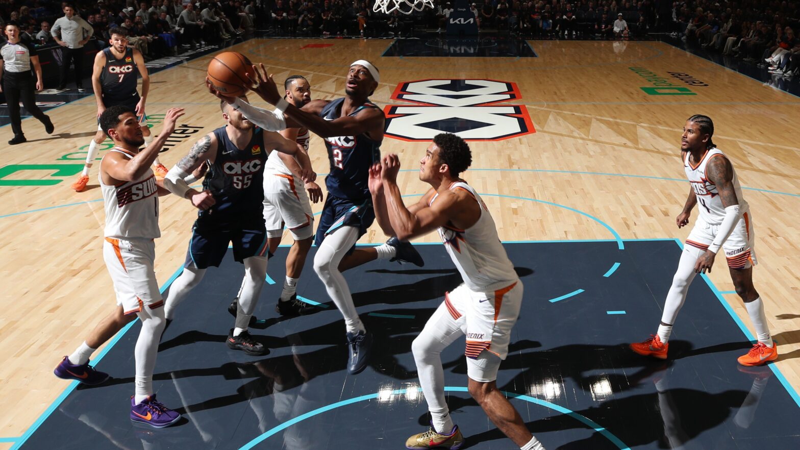 Back-to-back blocks for Chet Holmgren (19 pts, 6 reb, 4 ast), interspersed with an acrobatic layup off a feed from Shai Gilgeous-Alexander. The Thunder big man has exerted his influence in recent minutes, giving the Suns another obstacle to deal with around the rim.